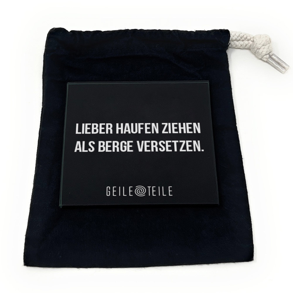 10cm Haufen ziehen - Robustes Echtglas Brettchen, 10x10cm mit Stoffsäckchen & Kartenhalter