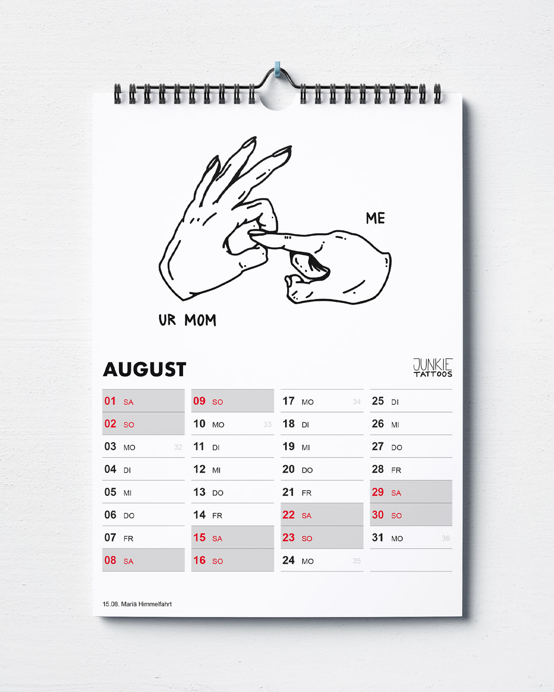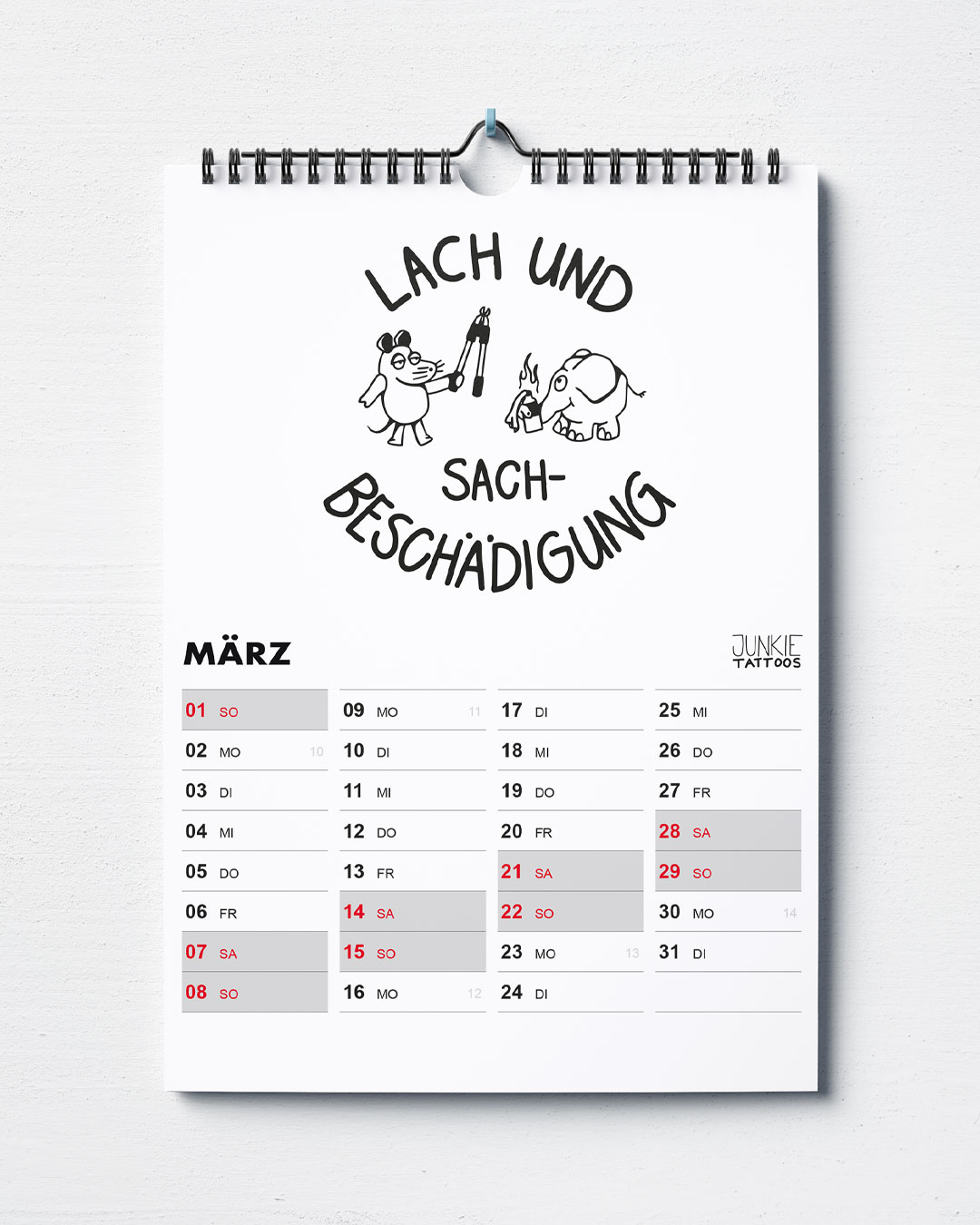 Der Junkie Tattoos Wandkalender beeinhaltet 12 wunderbare Junkie Tattoo Kunstwerke und ist streng limitiert auf 100 Stück.
