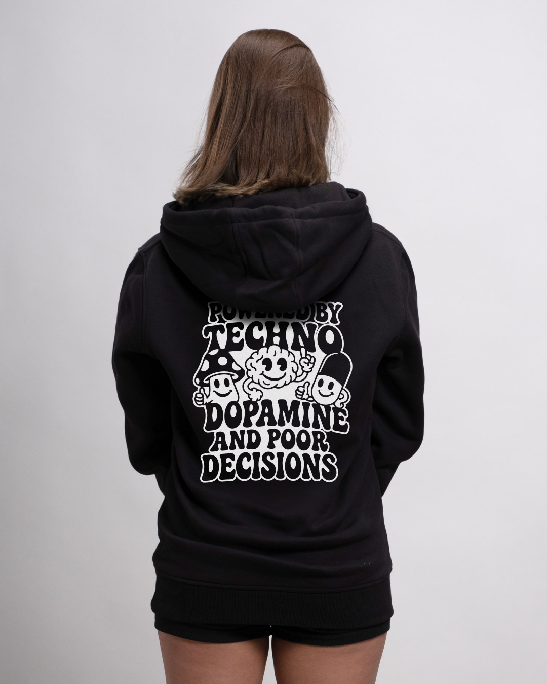 - Der Hoodie ist aus einem robusten Stoff und lässt sich entspannt beim Raven und Tanzen im Club oder auf dem Festival tragen.